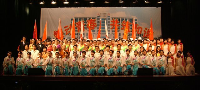 汇演结束后,卞国忠书记,郑勇超副书记等领导纷纷走上舞台和演员握手,留影。