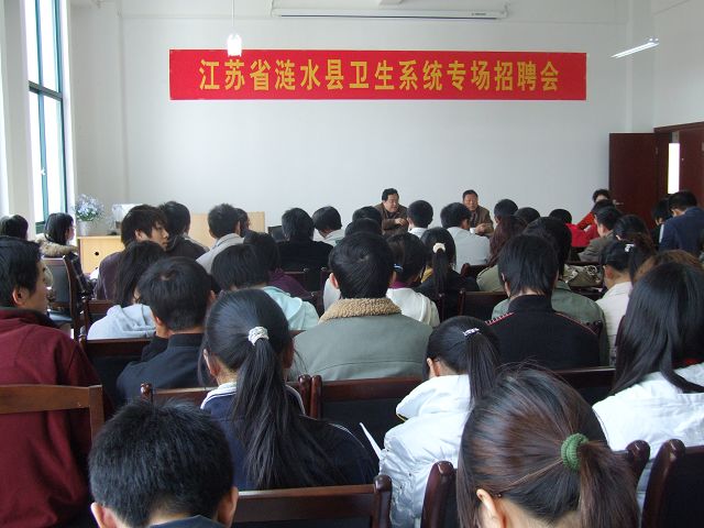 3月26日下午,江苏省涟水县卫生系统来我校举行专场招聘会,招聘会在大学生活动中心就业多功能会议厅举行。江苏省涟水县卫生局党委书记周建群等出席招聘会,近两百名毕业生参加了招聘会。