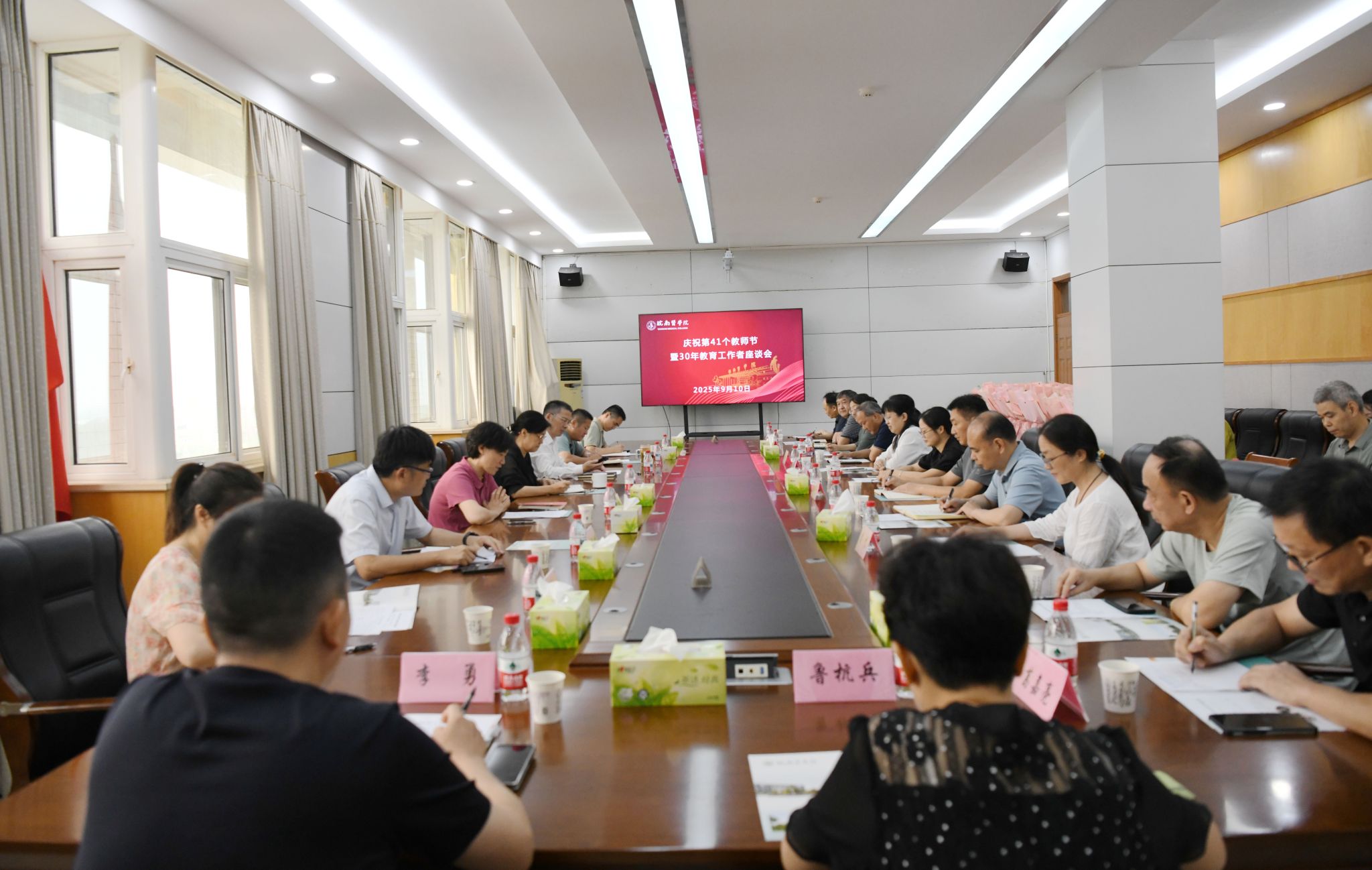 秋韵荡漾,硕果盈枝。9月10日上午,学校在党委会议室召开庆祝第41个教师节暨30年教育工作者座谈会。校领导夏劲松、姚应水、贾贤燕出席座谈会,座谈会由党委副书记贾贤燕主持。