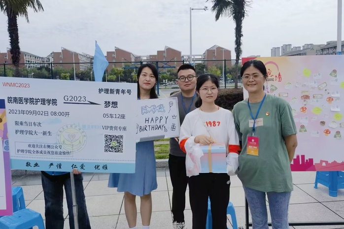 厚植爱校情怀。制作“我爱皖医”拍照打卡点、楼梯文化墙、签名墙、带有皖医元素的文创产品等,将爱校荣校教育融入迎新环节,在新生心中刻下“有”的种子。