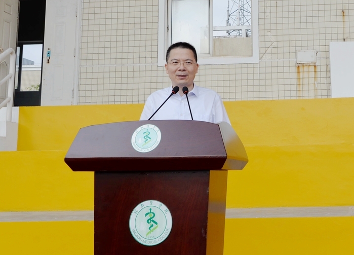 党委副书记、院长姚应水发表了题为《读万卷书 行万里路 做良知者》的讲话。“1950年,新中国百废待兴,为解决皖南地区缺医少药问题,皖南医事学校应运而生,这就是皖医的前身。”姚应水从学校历史出发,介绍了皖医“白手起家”的奋斗历程,表示经过一代代皖医人克服艰难险阻,加强内涵建设,推进高质量发展,学校形成了医、理、工、管、经、法多学科协调发展,专业丰富的学科专业体系,铸就了“艰苦创业、求实自强、奉献社会”的皖医精神和“精医、尚德、求实、自强”的校训。2023级新“皖医人”,将在皖医精神的滋养下、在全校教师的引导下,与学校共同披荆斩棘,成为学校更名大学和博士点建设的见证者、参与者、受益者。
