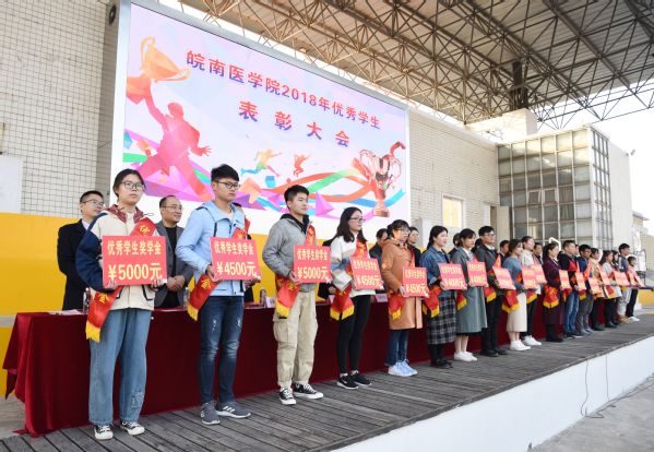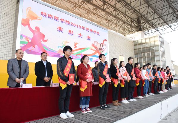 副院长吴金月讲话。他首先向受到表彰的先进个人和先进集体表示热烈祝贺,向辛勤耕耘在教育教学一线的全体老师和辅导员致以崇高的敬意和衷心的感谢。他指出,表彰大会既是学生奋发向上、积极进取精神风貌的集中展示,也是学校大力推进教育教学改革、不断加强人才培养工作成果的一次检阅,希望受表彰的个人和集体再接再厉,再创佳绩;未受表彰的个人和集体要自觉向先进和优秀看齐,争取后来居上。他对全体同学提出殷切希望,一是要勇担责任,立志报国。希望同学们明白,“青年有责任,国家才有希望”,“得其大者可以兼其小”,要秉承“精医、尚德、求实、自强”的校训,发扬“艰苦创业、求实自强、奉献社会”的皖医精神,把人生理想融入国家和民族的伟大梦想,在推动国家发展和社会进步的实践中实现个人价值。二是要努力读书,刻苦学习。同学们要始终把读书学习作为首要任务,作为一种责任、一种精神追求、一种生活方式。学习没有捷径可走,贵在勤奋、贵在钻研、贵在有恒。三是要百尺竿头,更进一步。大学之大,在于大师之大;大学之优,在于学生之优。同学们要用更高的眼光审视自己,要把已有的成绩作为新的起点,把获得的荣誉化为向更高目标迈进的动力,向更高标准看齐,更高目标迈进,努力成为社会精英、国之栋梁。