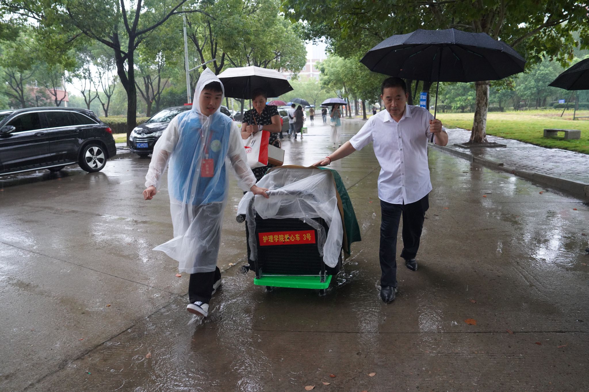 全心全意迎新生,全力以赴办实事。在迎新现场,还有一支由师生党员组成的志愿服务队。他们统一佩戴党徽,亮出党员身份,用心用情用力投身迎新工作中,开展交通疏导、防诈防推销宣传、新生引导咨询、行李搬运等工作任务。尤其迎新首日,由于校门口市政道路维修、校内停车空间有限,为避免自驾车辆拥堵,保证交通通畅,由教师党员组成的党员先锋队早早到达指定位置,配合保卫处耐心引导新生报到自驾车辆有序进校、安全停放、下卸行李、定向驶离。虽然穿着雨衣,但雨水和汗水却早已浸湿了他们的衣背。据统计,迎新期间,全校共设立党员服务站16个,成立党员服务队16个,有近600名师生党员参与迎新工作中,他们以实际行动擦亮了党员底色,让党旗在迎新一线高高飘扬,让党徽在迎新一线闪闪发光。
