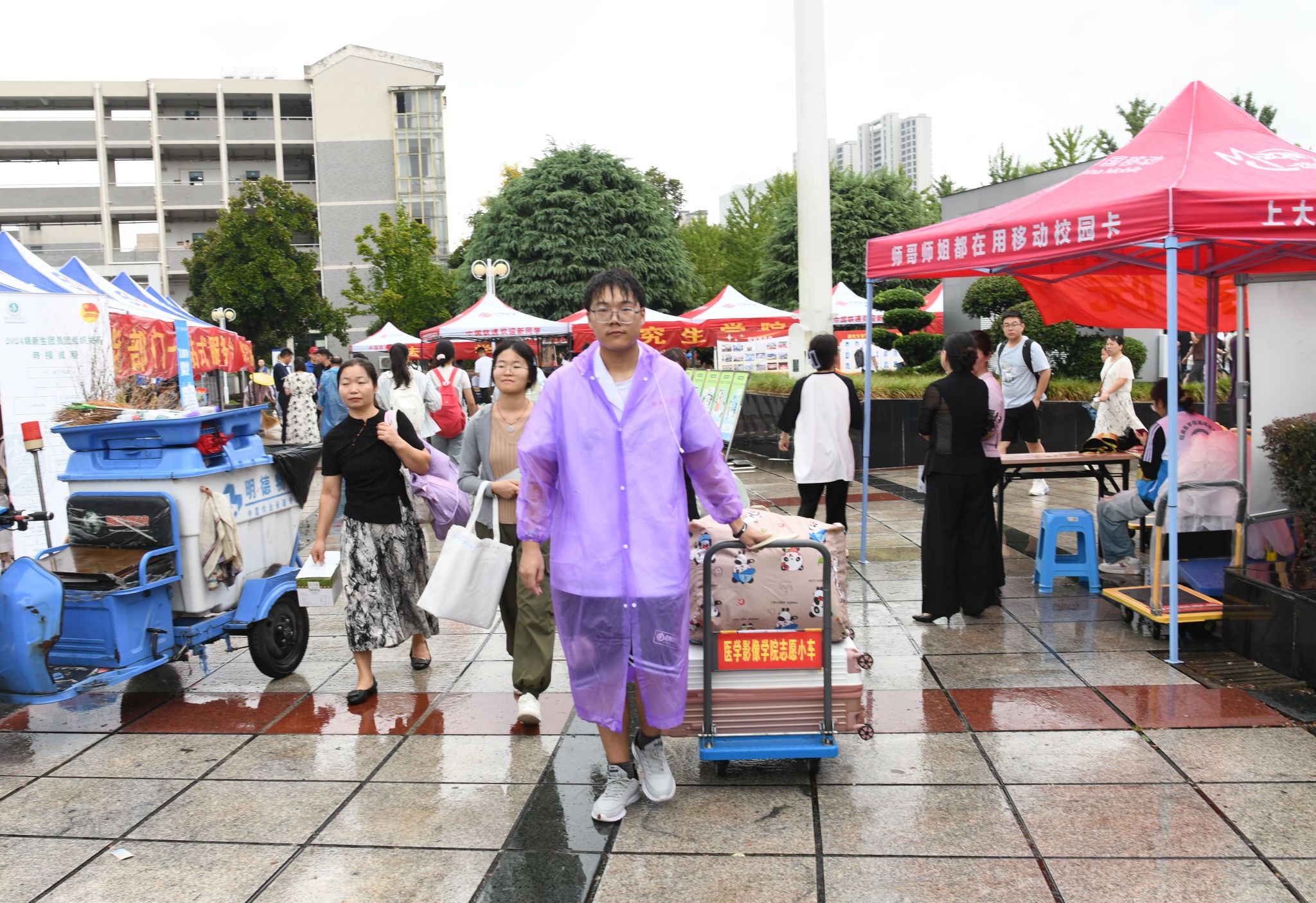 迎新首日,芜湖迎来入秋后的首场大雨。虽然大雨滂沱,但却淋不湿新同学与学校“双向奔赴”的温暖。学校及时优化报道地点、简化报道流程、开通绿色通道,并设置家长休息区,最大限度为学生报到提供方便。