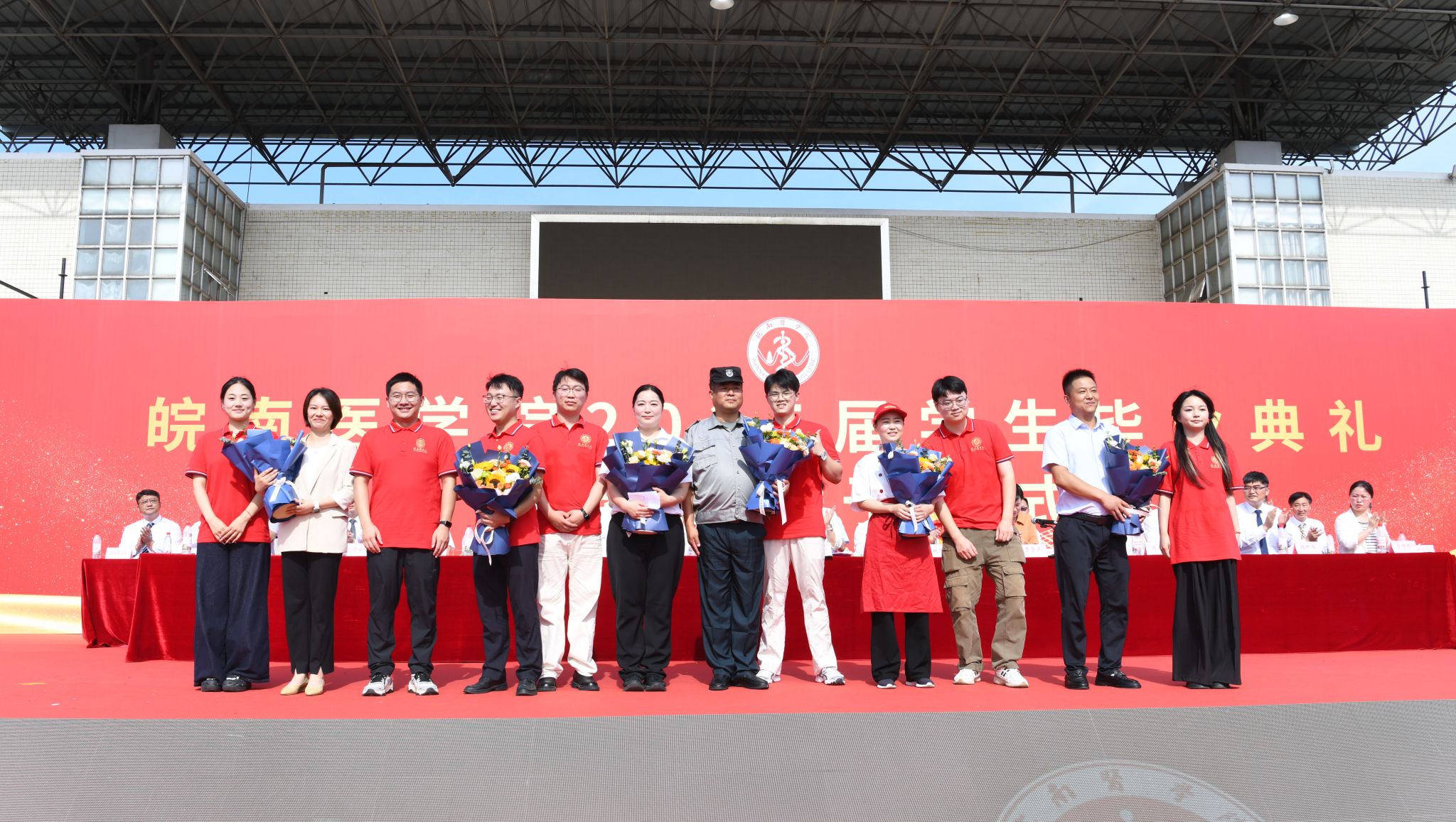典礼特别邀请1984届优秀校友、国家杰出青年基金获得者、深圳大学讲席教授、博士生导师朱卫国作为校友代表发言。他温情回忆了在皖医学习的点滴往事,希望毕业生别让“起点”定义了自己的“终极表达”,学会用在皖医学到的“知识库”和“意志力”应对人生“DNA损伤”;要终身学习,拥抱时代变化,面对AI诊疗、基因编辑、精准医疗等医疗新工具,不断给自己“添砖加瓦”;要有家国情怀,如同成熟的“干细胞”、精准的“分子探针”、稳定的“基因组”、强大的“调控因子”,用精湛的医术、创新的智慧、无私的奉献守护万家灯火,在中国乃至人类健康的壮丽画卷上留下浓墨重彩的一笔!