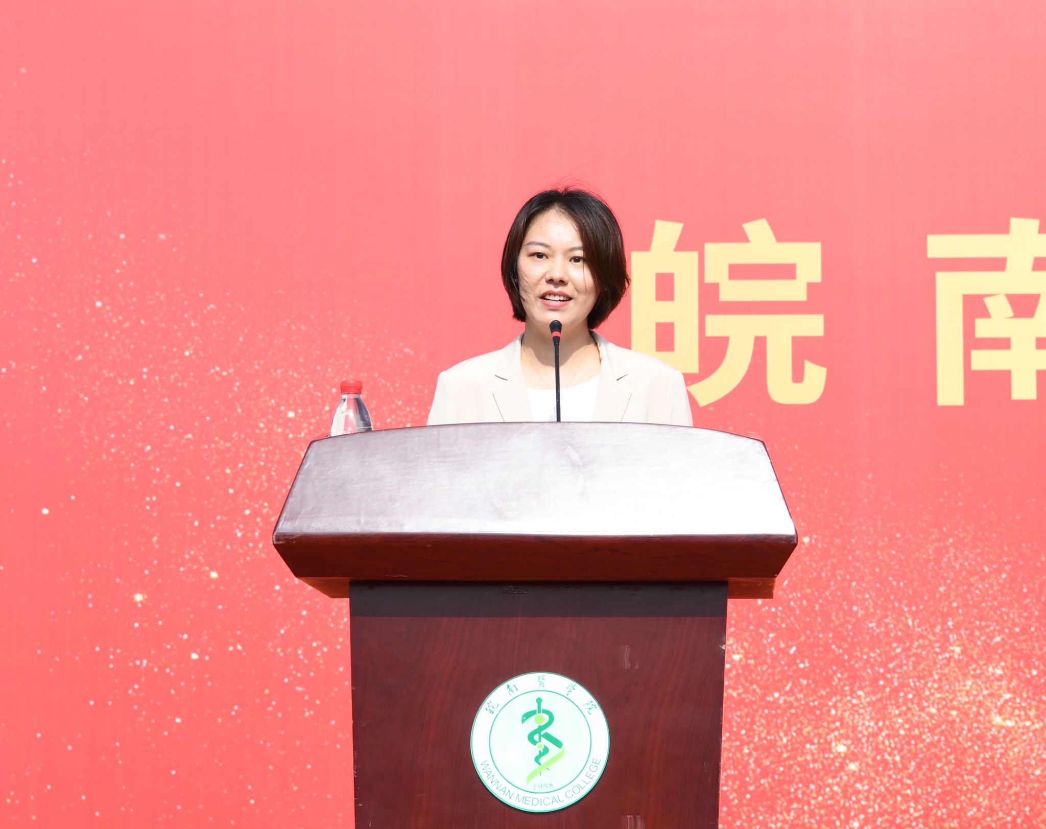 教师代表、基础医学院产翠翠分享在皖医求学工作的经历,勉励同学们要保持终身学习的热情,保持对医学事业的热爱,用自己的专业特长发光发热,绘就医学事业的宏伟蓝图。