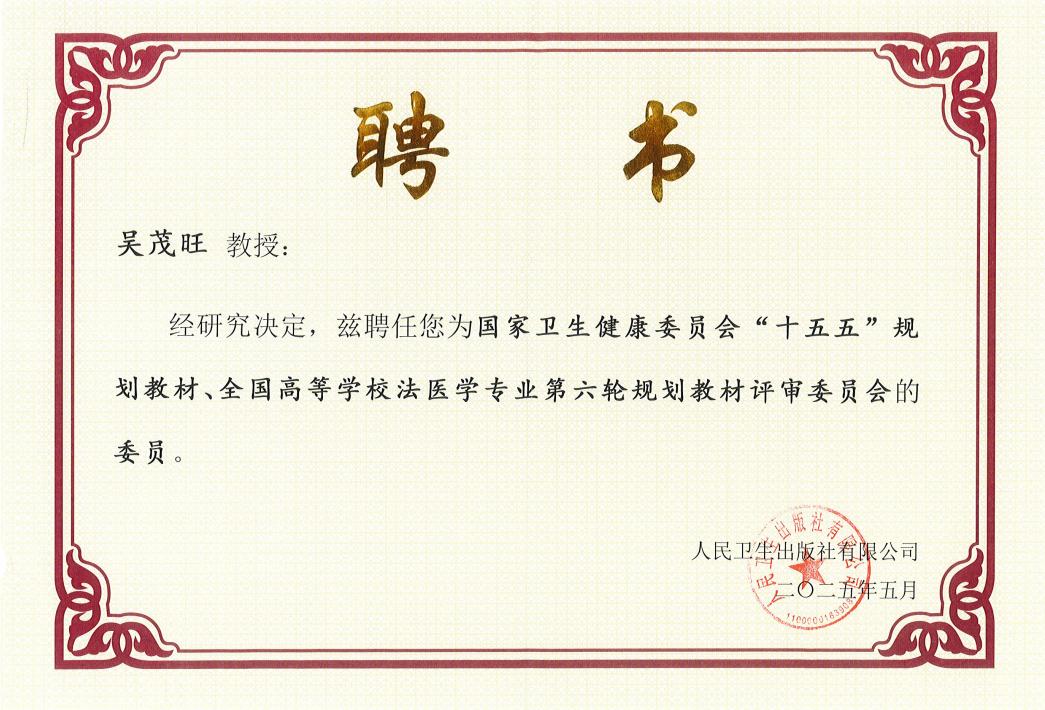 法医学院吴茂旺教授被聘为全国规划教材评审委员会委员